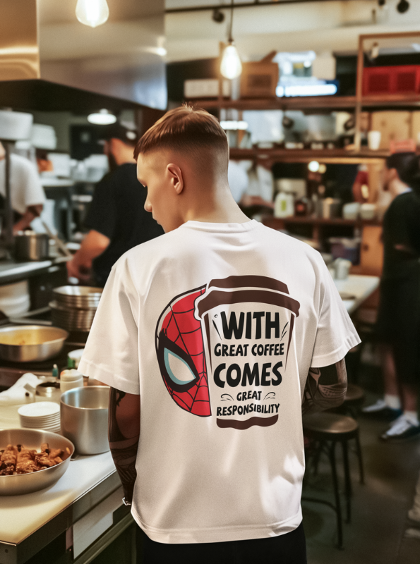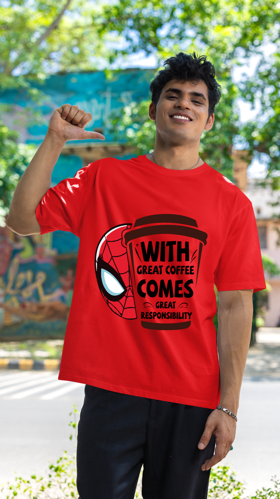 Spider Coffee Graphic Printed Pure Cotton T-Shirt