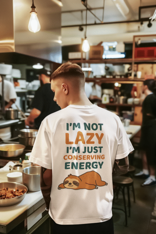 I’m Not Lazy, Just Conserving Energy Sloth Graphic Printed Cotton T-Shirt