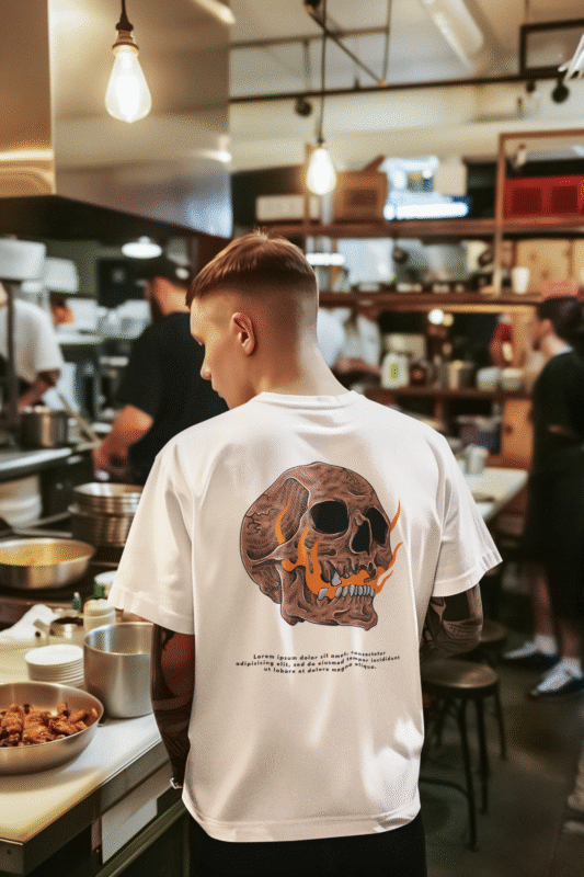 Flaming Skull Graphic Printed Pure Cotton T-Shirt