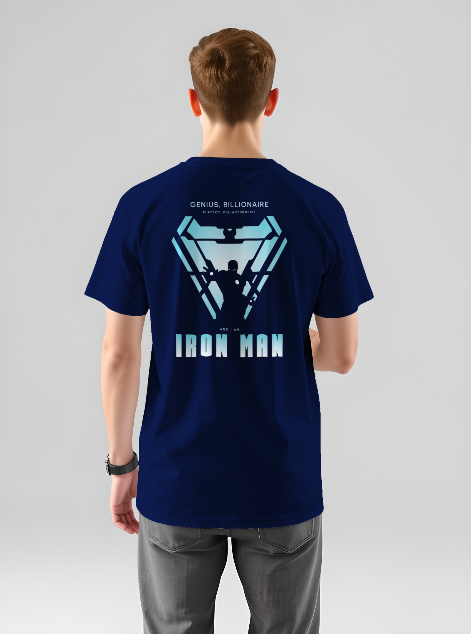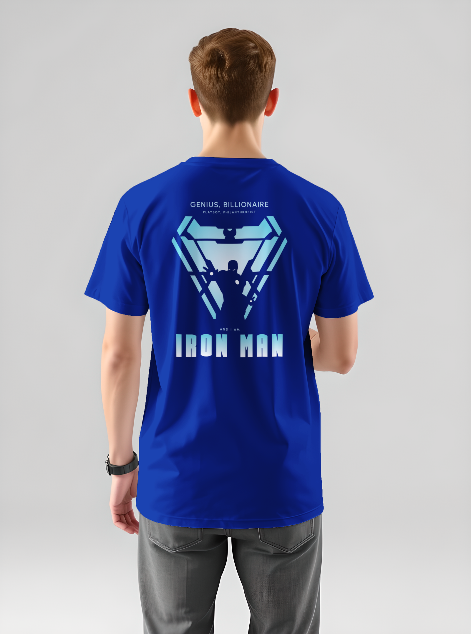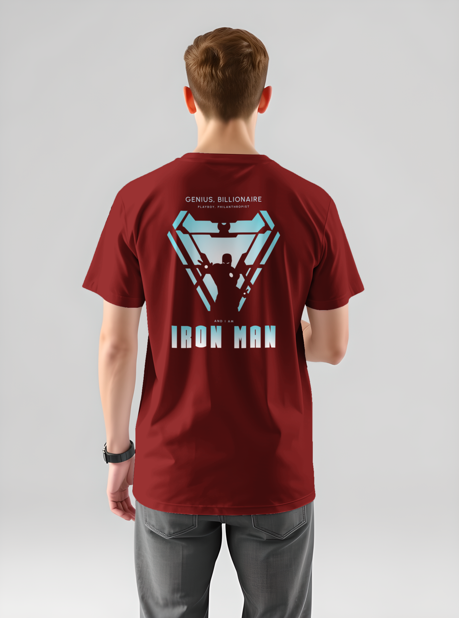 Unleash your inner superhero with this bold and iconic Iron Man printed t-shirt. Featuring a high-quality graphic of Tony Stark in his legendary suit, this tee is a must-have for every Marvel fan. Made from soft, breathable cotton fabric, it offers all-day comfort with a stylish edge. Whether you’re headed to a casual outing or a Marvel movie night, this t-shirt lets you carry the genius, billionaire, playboy, philanthropist vibes wherever you go.