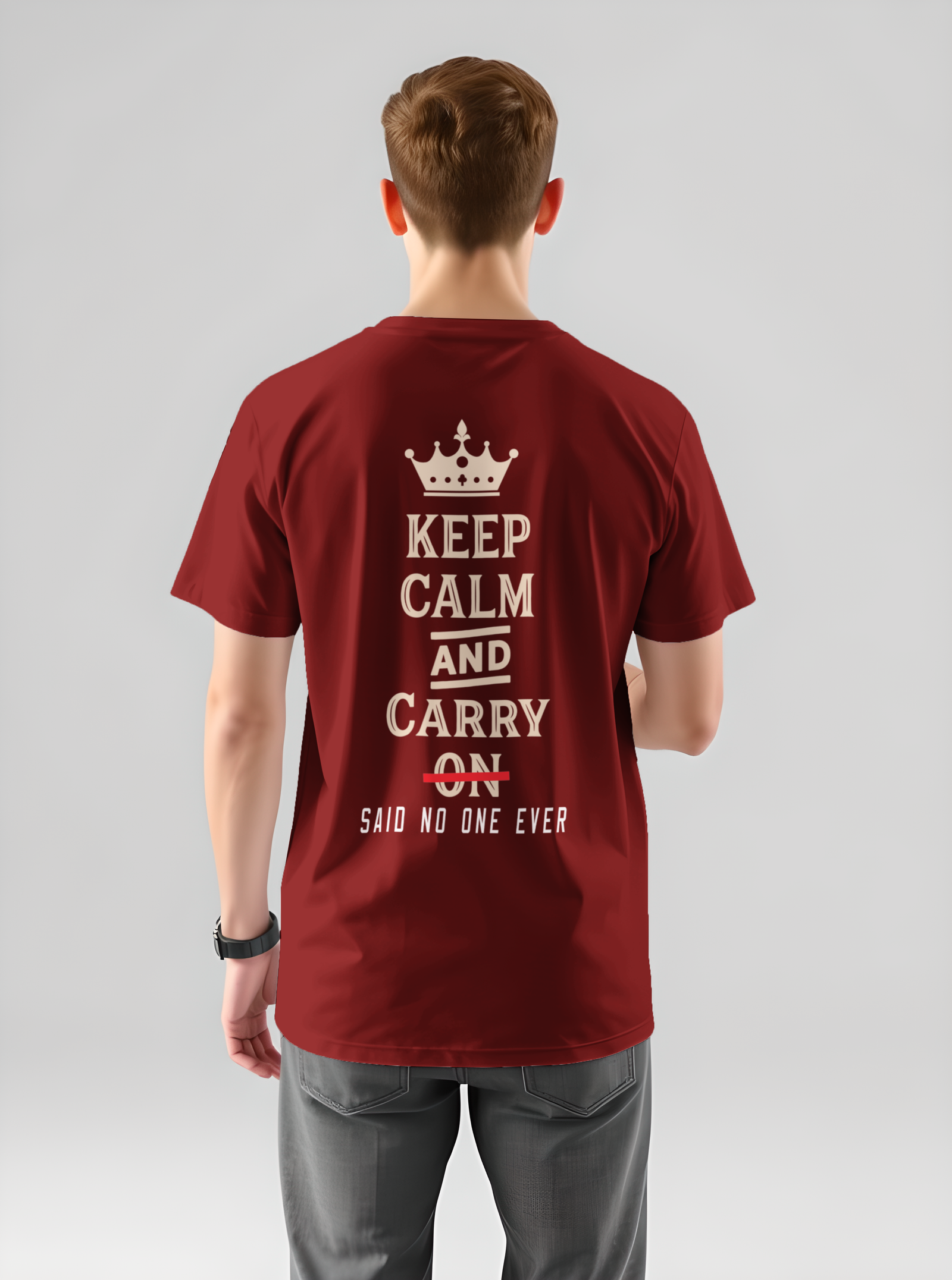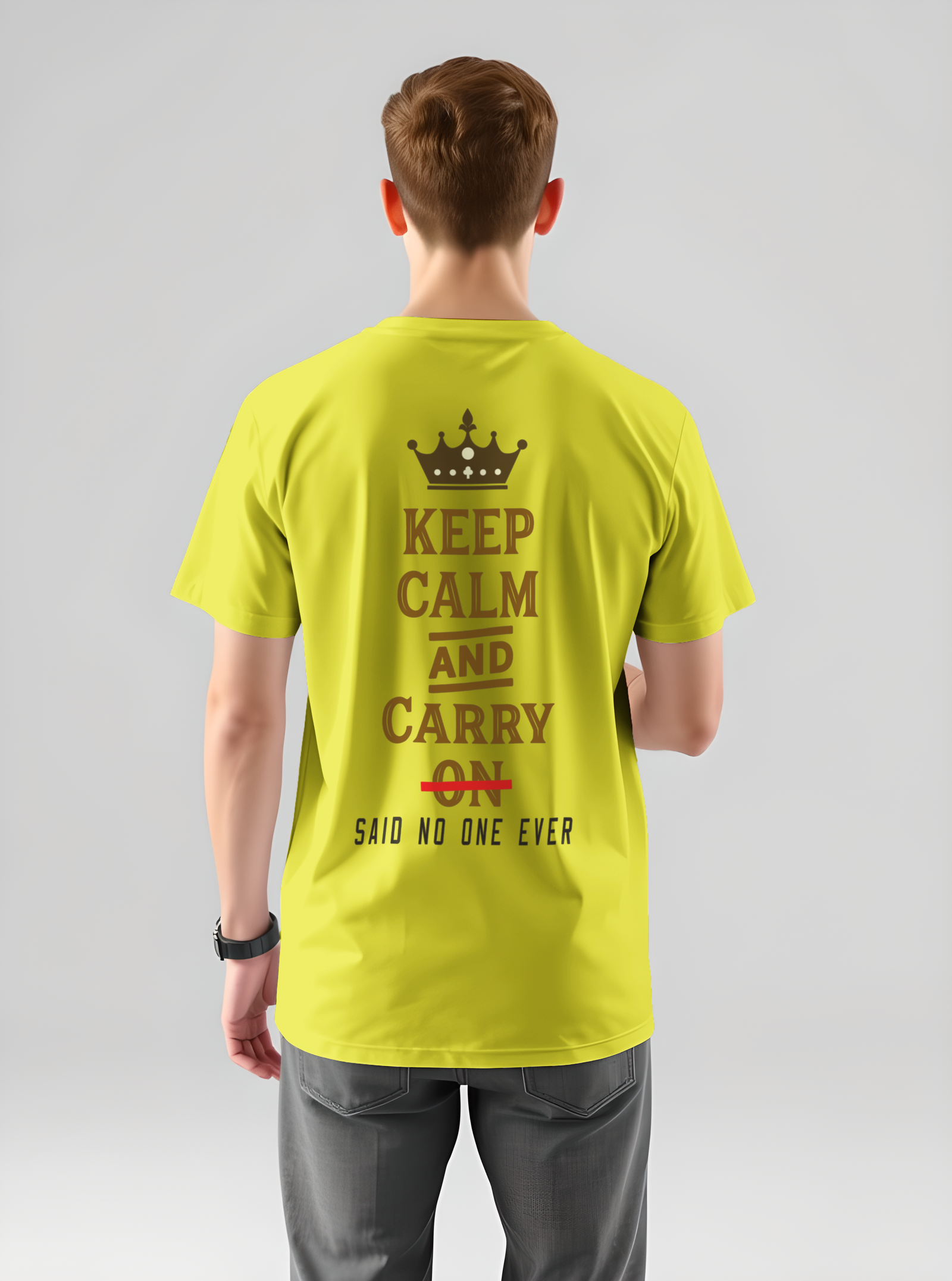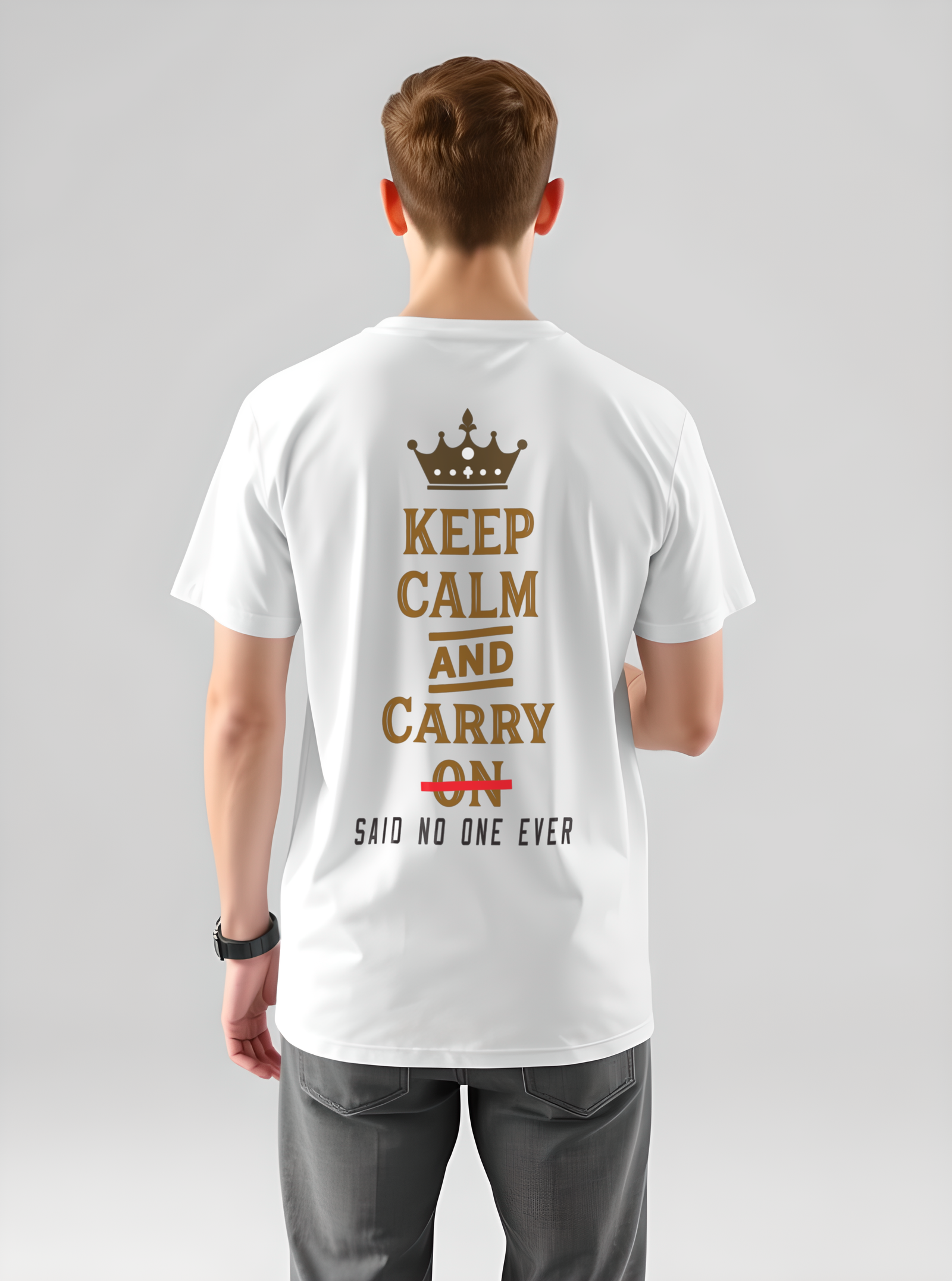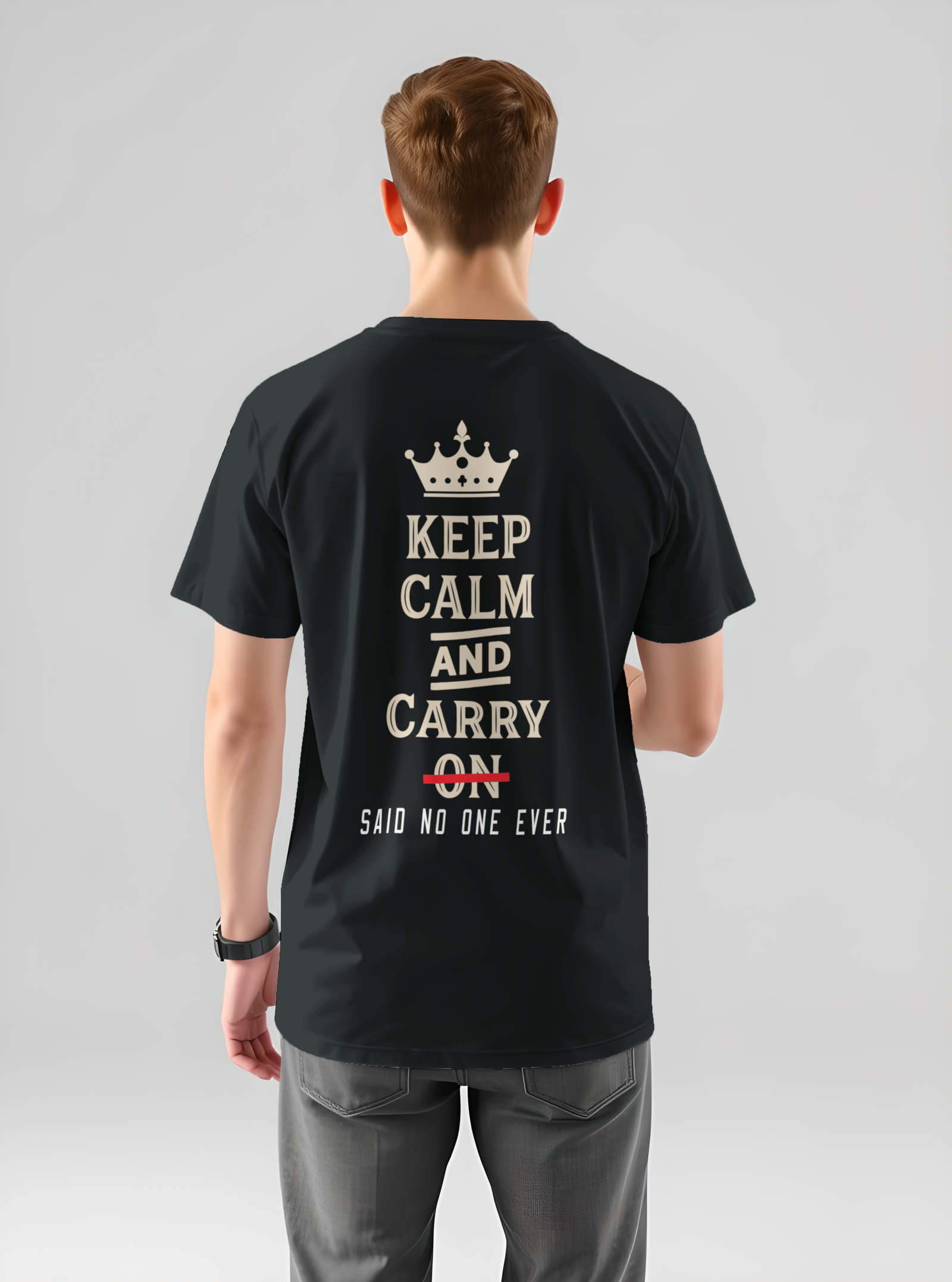 Stay stylish and composed with our Keep Calm printed T-shirt – a classic reminder to relax and handle life with cool confidence. Made from soft, breathable cotton, this tee offers all-day comfort with a bold message that never goes out of style. Whether you’re chilling at home, heading out with friends, or just need a little motivation, this T-shirt is the perfect mix of comfort and attitude. The clean and minimal design makes it easy to pair with jeans, shorts, or joggers. Wear it loud. Wear it proud. Just Keep Calm.