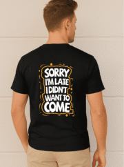 Make your entrance unforgettable with our “Sorry Iโm Late, I Didnโt Want to Come” graphic t-shirt โ the perfect blend of humor and style. Crafted from 100% premium cotton, this tee offers a soft, breathable feel and a regular unisex fit thatโs comfortable all day long.