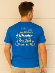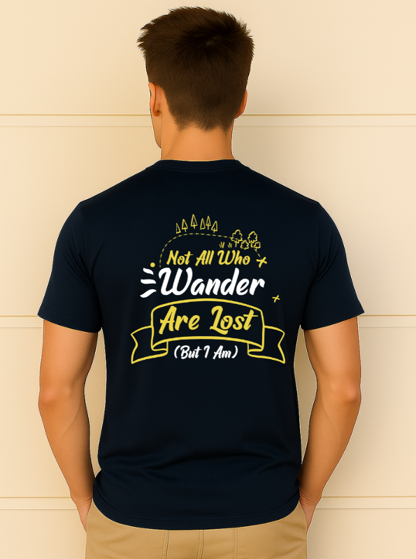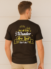 Step out in style and humor with this “Not All Who Wander Are Lost (But I Am)” printed T-shirt. Featuring bold yellow and white typography with playful travel-themed graphics, this tee perfectly blends wanderlust vibes with a cheeky twist. Made from soft, breathable fabric, it ensures all-day comfort whether youโre exploring the city, hiking the trails, or just chilling with friends. Ideal for travelers, adventure lovers, and anyone with a great sense of humor, this shirt is a conversation starter wherever you go.