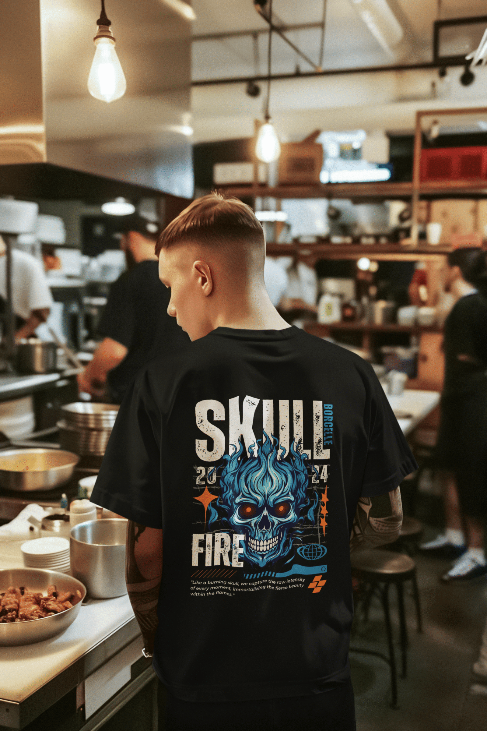 Unleash your inner fire with the โ€œSkullfireโ€ Graphic Tee โ€“ a bold streetwear piece featuring a blazing blue skull engulfed in flames. Designed for those who live fearless and loud, this tee combines edgy artwork with modern street style, making it the ultimate statement for urban rebels.