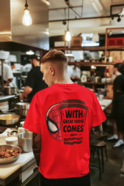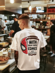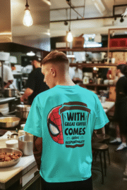 Bring humor and hero vibes together with this With Great Coffee Comes Great Responsibility T-Shirt. Featuring a bold graphic that combines a coffee cup with a superhero-inspired mask, this tee is perfect for coffee lovers and comic fans alike. Made from soft, breathable fabric, itโs ideal for casual wear, coffee shop hangs, or gifting to anyone who canโt start their day without caffeine. Comfortable, stylish, and full of characterโthis shirt is made to stand out.