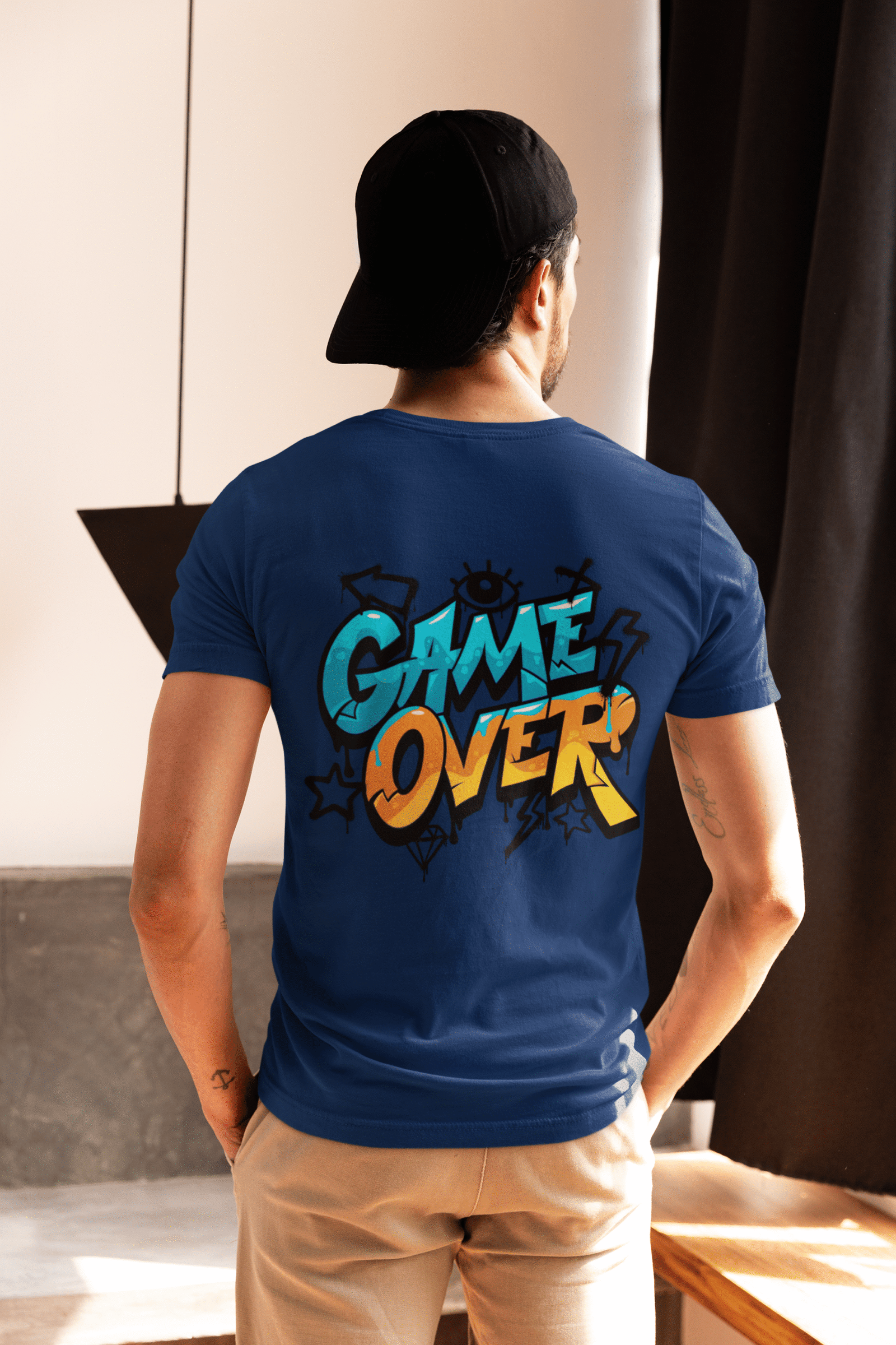 Game Over Graffiti Street Style Printed Cotton T-Shirt